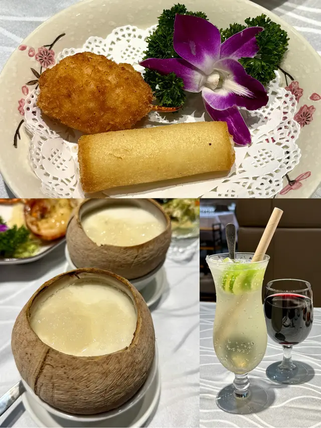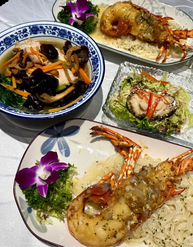 一個價錢唔止食到西澳龍蝦 + 鮮鮑魚 + 花膠燉湯,成個套餐仲有包埋其他嘢食又有酒或果汁!