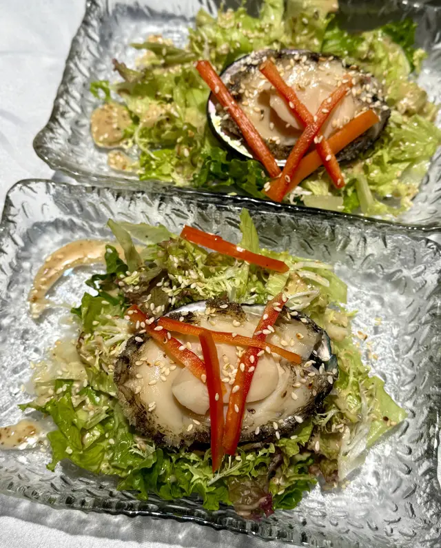 彈牙鮑魚已切成3片,厚度啱啱好,食落方便,配爽脆清新凱撒沙律