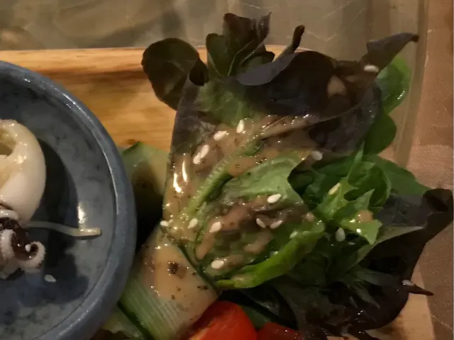 前菜除有酸甜齋、黑白雲耳另有買相吸引的拼盤包括水間田園沙律菜混合微辣芝麻醬,令沙律菜添加風味