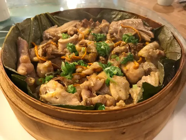 香氣撲鼻的荷香蟲草花牛肝菌蒸沙欄雞,肉質鮮嫩。