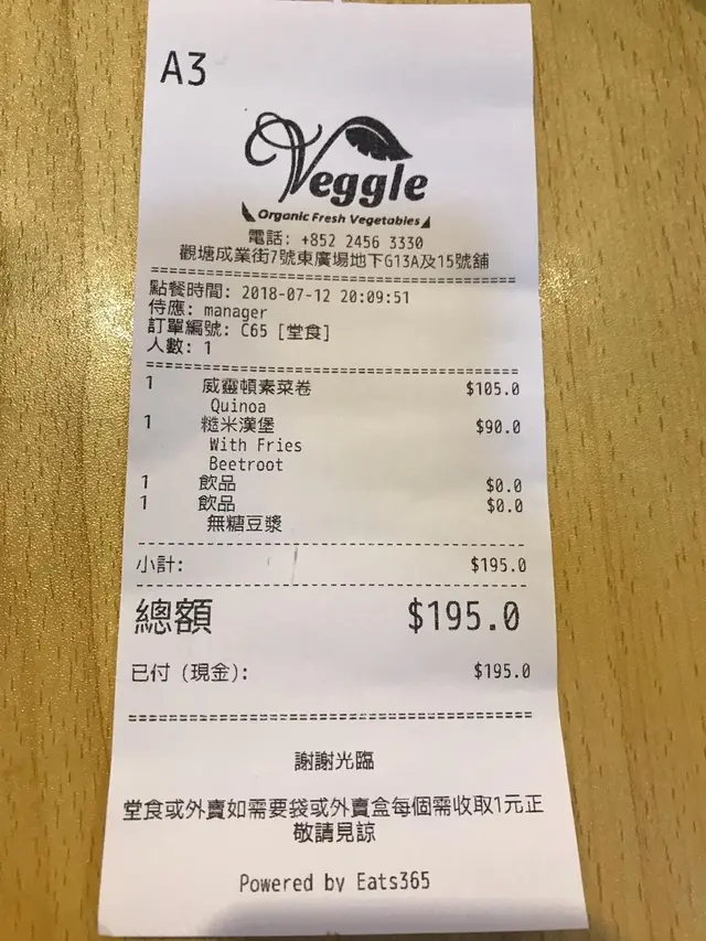探索草食世界 JS food等級42018-07-122K 瀏覽 關注 男朋友今日要黎觀塘做野,見個供應商,順道過黎搵我食個晚飯。知道東廣場近排愈來愈多野食,所以黎呢邊覓食。見到素食好似幾得意咁,睇人地上嘅菜都幾色彩繽紛,好似幾好食咁,就簡左佢黎食啦。Um...細鋪黎講,佢d野全部都接近一百,都幾貴下。 我簡左Veggie 招牌糙米漢堡配什菜及炸蕃薯條($90),個漢堡太多層,無辦法一大啖咬落去,而且無紙巾,食個時非常狼狽。炸蕃薯無哂變炸薯條,好心講一聲提提位客人,我地睇嘅係檯上嘅菜單,但就淨係貼左張紙係佢地嘅出餐位。我係因為蕃薯先叫...有點無奈,而個漢堡只係好飽肚,並無好好食。全素威靈頓菜卷配甘筍薯蓉黑松露汁($105),偷左d黎食,雖然有創意,但個汁酸酸咸咸,唔多好食,可能希望愈大,失望愈大。下次都係唔貪新鮮lo。以上食評乃用戶個人意見 , 並不代表OpenRice之觀點。讚好分享探索草食世界 Veggle Cafe https://s.openrice.com/QrbT0jJWl00檢舉 張貼 評分3味道3環境4服務3衛生2抵食用餐日期2018-07-12用餐途徑堂食人均消費$100 (晚餐)