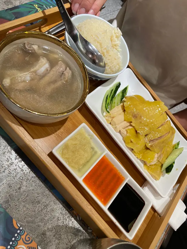 Meat and bone tea has a lot of meat and bones, and the soup has a strong medicinal flavour. Hainan chickens taste good together with the rice, texture of the chicken are smooth enough, will encore!