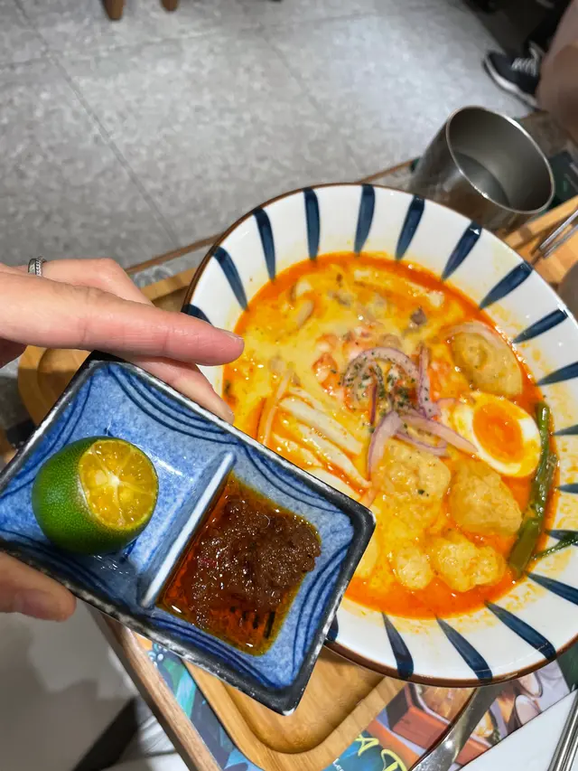The signature Lasha noodles are moderate, and the texture of the rice noodles is thin. the coconut milk is much more specific in taste, and even if you add hot spice, it is not much different.