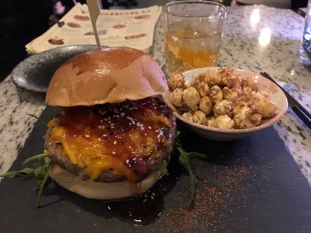 我叫既呢一款係old-fashion combo,有齊burger、爆谷同cocktail,份量啱啱好夠一個人食,不過略嫌爆谷唔夠脆,配上七味粉都唔係太夾。至於個burger係幾好食嘅,牛肉都充滿肉汁,而且麵包都幾鬆軟