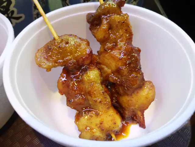 雞串是妹妹推介小吃,一串三粒。