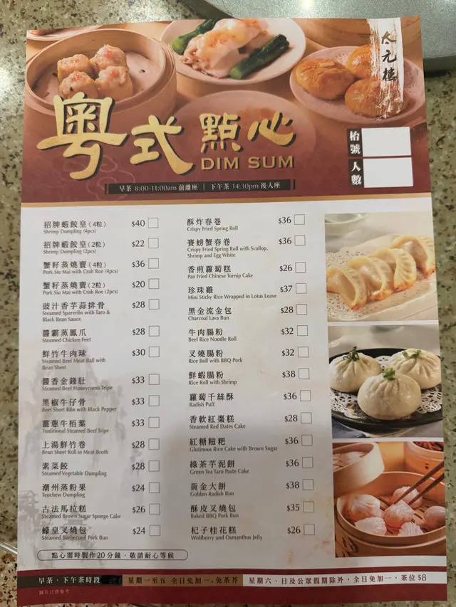 新推出精美點心 food_is_lifeTy等級12025-03-082K 瀏覽 關注 行過見到太元樓新推出咗早茶飲茶時段,點心種類雖然沒有茶樓咁多,但係睇落都有唔少品種,同埋睇落去好多都係新派,好似賽螃蟹春卷、綠茶芋泥餅。今次冇試,下次返黎再試。好少茶樓唔收加一,唔收茶芥,呢樣野真係好誇張今日嘗試一下佢哋既蝦餃,燒賣,蝦腸,鳳爪。蝦餃 大大粒,真係大粒!都係蝦仁,好食燒賣 中上,都係大大粒 有蝦仁蝦腸 好食 係果種薄皮皺皮腸鳳爪 大隻,唔算太鹹,淋淋地,老人家、小朋友都岩食地方舒服 岩老友記、一家大細。171以上食評乃用戶個人意見 , 並不代表OpenRice之觀點。讚好分享新推出精美點心 太元樓 https://s.openrice.com/QrbT0BQvQ00檢舉 張貼 評分4味道4環境4服務4衛生5抵食用餐途徑堂食