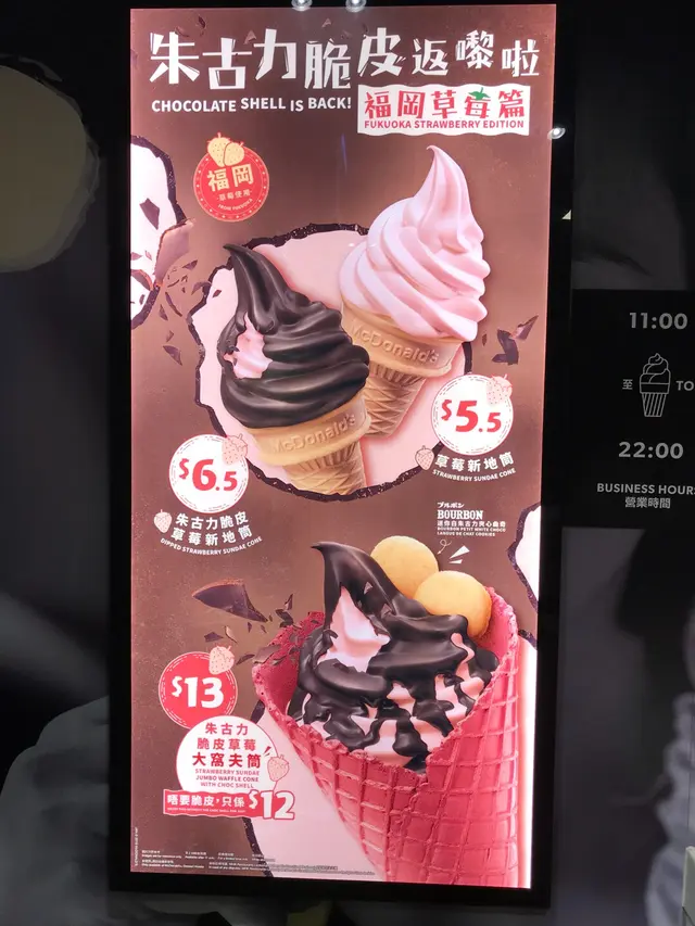新產品 朱古力脆皮草莓新地筒🍫 🍓🍦 kapukapu等級42019-01-27415 瀏覽 關注 今天入左長洲, 正正碼頭就對住間McDonald,仲有甜品站。回程趁有時間,未有船,就去買左新出既士多啤梨味新地筒,相片好吸引,一見到就好想食。1朱古力脆皮草莓新地筒 $6.5,用福崗草莓,不算太藥水,價錢平,不會太高要求,可惜的是朱古力脆皮太少,未能覆蓋整個草莓新地。因我是為了吃朱古力脆皮,就有些少失望了。朱古力脆皮草莓新地筒草莓新地筒 $5.5,朋友吃少了朱古力脆皮的草莓新地筒,平$1。草莓新地筒✨✨✨✨✨✨✨✨✨✨如果大家喜愛我寫既食評📝,麻煩幫幫手比個愛的鼓勵❤️,我會寫更多豐富既食評比大家!🤤✨✨✨✨✨✨✨✨✨✨以上食評乃用戶個人意見 , 並不代表OpenRice之觀點。讚好分享新產品 朱古力脆皮草莓新地筒🍫 🍓🍦 麥當勞 (新興街) https://s.openrice.com/QrbT0R34o00檢舉 張貼 評分4味道3環境3服務3衛生5抵食推介美食朱古力脆皮草莓新地筒草莓新地筒用餐日期2019-01-26等候時間10 分鐘 (堂食)用餐時段宵夜