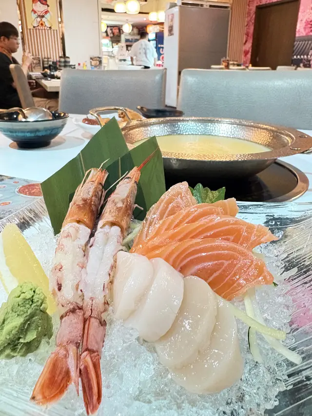 除咗牛肉,海鮮拼盤都相當有驚喜😬 最震撼係隻極大隻蠔,煮熟之後隻蠔都仲好飽滿,鮮甜又冇腥味😝 鮑魚就有四隻,咬落好彈牙,沙白夠新鮮,一熟就開口,食到海水嘅鮮甜。仲有魚片都好滑溜,份量好足,其中沙白同埋魚片係出面自助區都可以refill🥰
