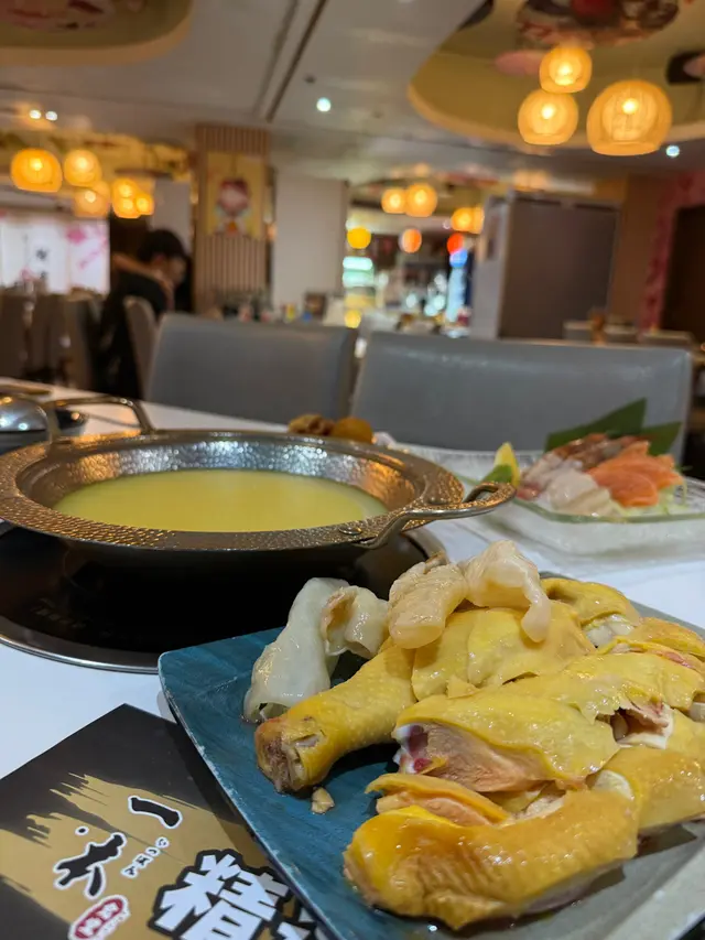 坐低唔夠一陣就已經上咗個花膠湯湯,個湯底係金黃色,一聞就聞到好濃郁嘅雞湯香味🤩,飲落去好清甜,冇味精味,係由食材本身熬出嚟嘅鮮甜🤣 配料方面就係分開上,都算幾多花膠同雞,店員指示湯底滾起就落埋配料就食得~ 雞肉唔會鞋口,花膠就滑嘟嘟,湯底本身少啲調味,所以抬頭就會有而提供比自己調返鍾意嘅鹹道,飲到尾都唔會覺得膩,飲夠就可以加湯底打邊爐🍲