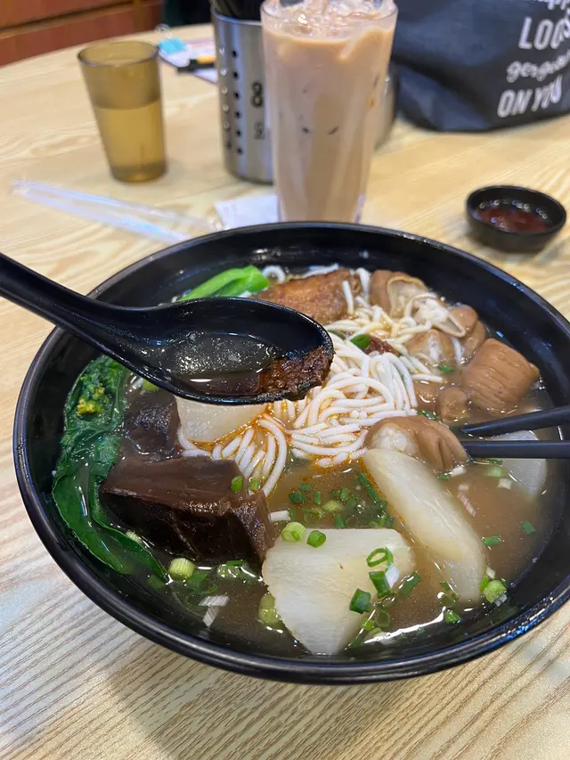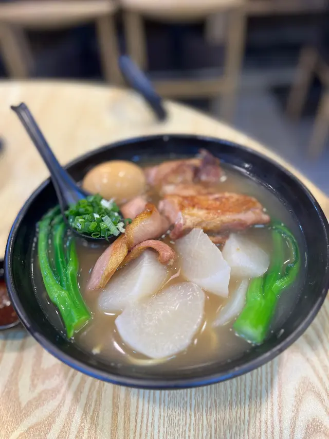 第一碗係蘿蔔,蠔油冬菇,瑞士雞翼,滷水豬大腸米線,加腩汁