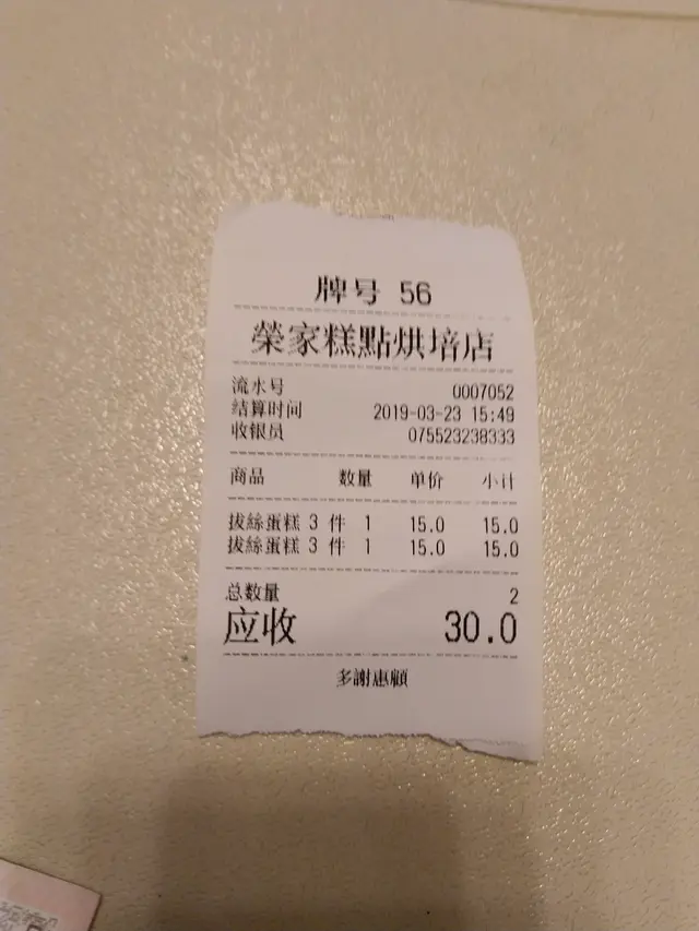 新鮮即制創新的拔絲蛋糕 debbie040404等級42019-03-25173 วิว ติดตาม 小店只設外賣,15元3件,買六件不同口味 一共三十元,回家跟家人分甘同味。我買了 抹茶、朱古力、蜂蜜、芝士、紫菜、曲奇餅碎,味道各有特色,我個人喜歡紫菜和曲奇餅碎。拔絲蛋糕係加咗肉鬆落去麵粉同埋雞蛋漿裡面,然後焗出來的蛋糕就有一絲絲的效果,食起上嚟甜中帶鹹,亦同時食到蛋糕和肉鬆 融為一體 的感覺,味道和口感之創新前所未有。 這店要買夠12件才有紙盒包裝,我買六件 ,只會用紙袋包,攞到返屋企可能會變形,好在我早有準備,自擕膠盒。 $30รีวิวด้านบนคือ ความคิดเห็นของผู้ใช้ ซึ่งไม่ใช่ความคิดเห็นของ OpenRiceไลค์แชร์新鮮即制創新的拔絲蛋糕 榮家糕點烘培店 https://s.openrice.com/QrbT07mmp00แจ้งปัญหา โพสต์ คะแนน5รสชาติ3การตกแต่ง5บริการ5ความสะอาด5ความคุ้มค่าวันที่ไปกิน2019-03-23วิธีการกิน堂食