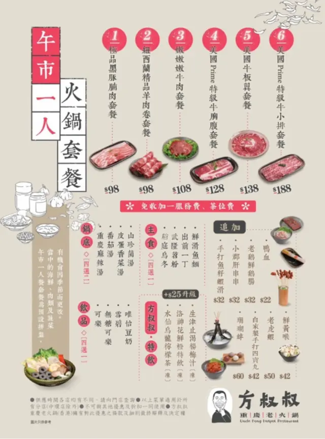 方叔叔午餐仲有火鍋一人餐,有肉類、海鮮、素菜、主食、甜品、飲品等各種美味,唔使$100😱下次可以試埋