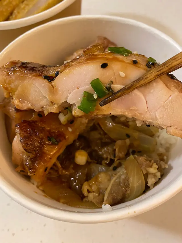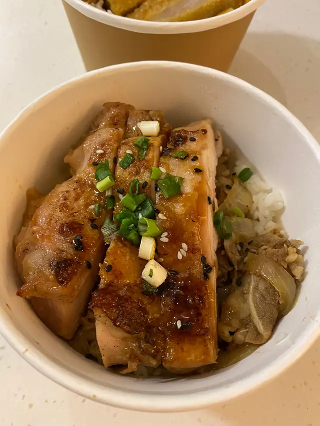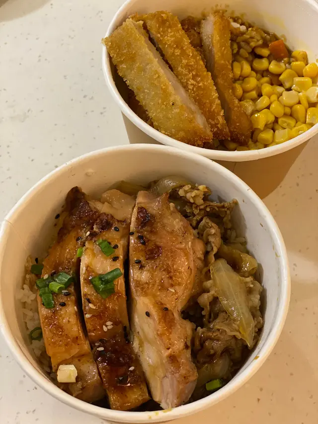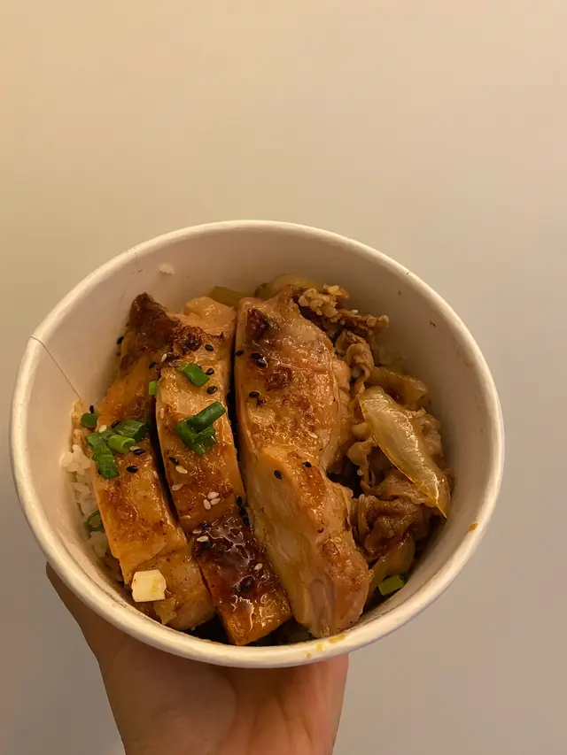 日式牛肉飯+配照燒雞扒$15
