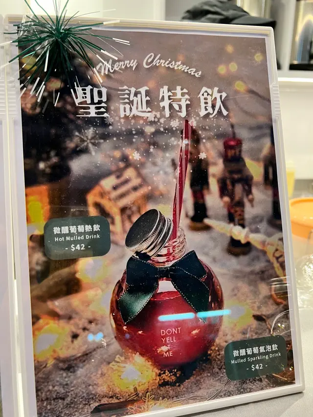 又適逢冬季同聖誕,你以為又係飲台灣茶,錯了,佢竟然出咗熱紅酒加添聖誕氣氛,最正係有冷氣泡飲和暖氣泡飲兩個選擇,飲品造型更特地用上圓身球瓶,瓶口以綠色絲帶或蝴蝶結綁在瓶口作裝飾,勁有聖誕氣氛,飲用後,仲可用作聖誕樹掛飾,限定2000 個,手快有手慢無。