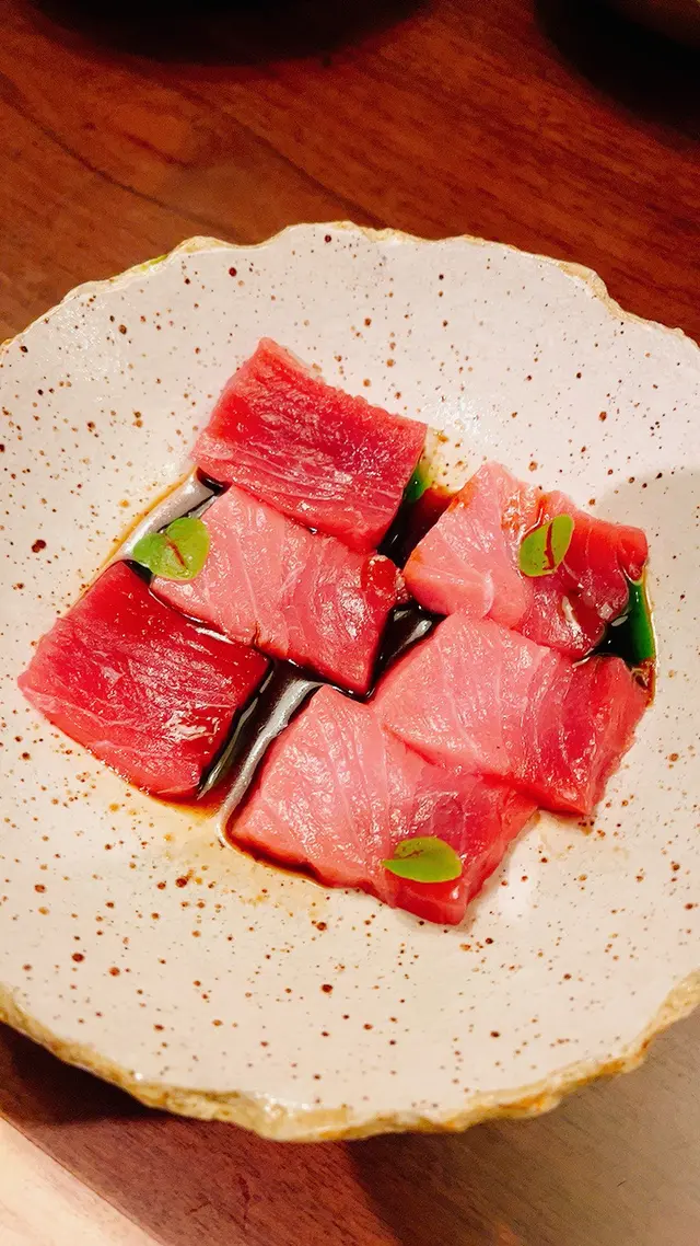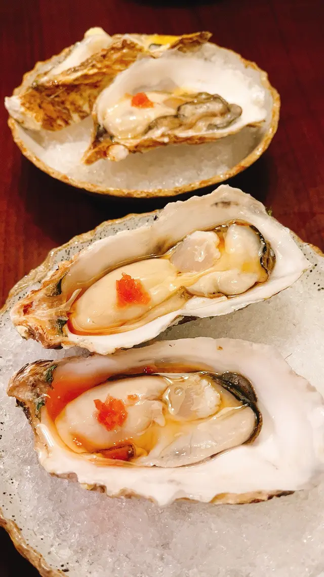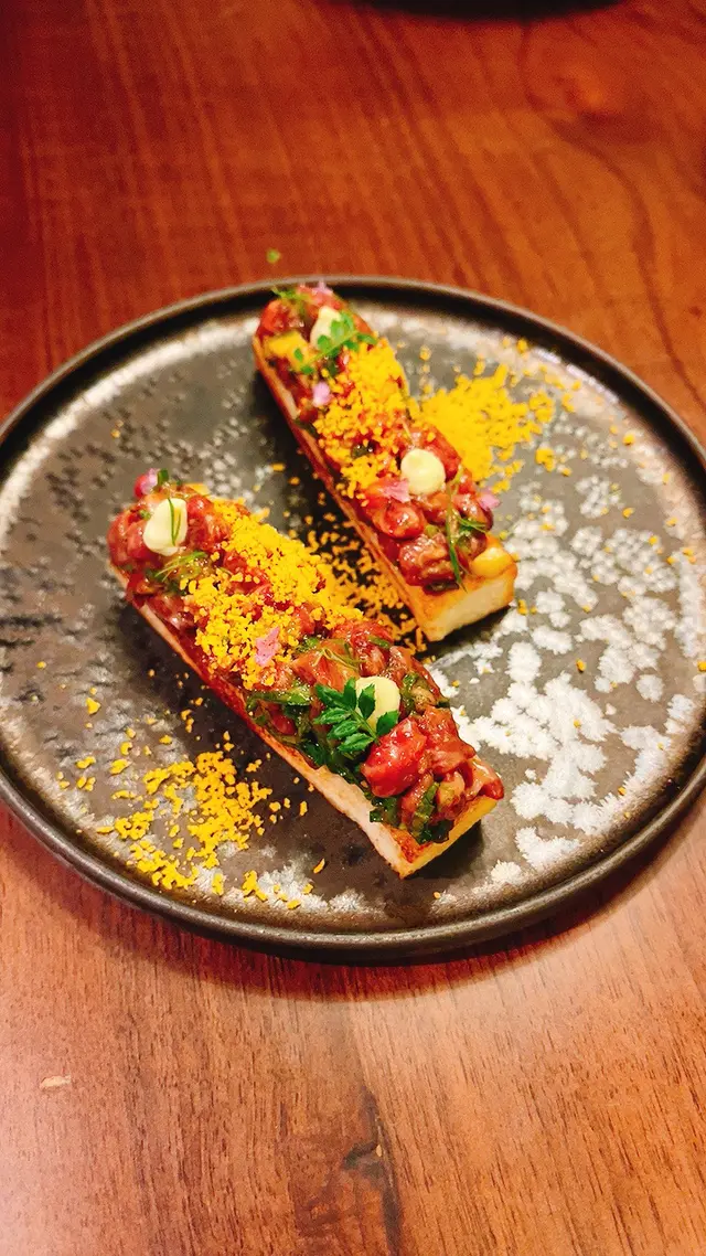 potato salad, 上面仲插着薯片, 薯片豐富左成個沙律嘅口感! 啲蠔好新鮮, 都有少少海水味, 唔太creamy 非常啱我口味🤤喺order嘅時候剩返兩份嘅和牛toast, 可能個醬汁有啲太濃, 搶走咗和牛嘅味道🙈吞拿魚刺身都好新鮮㗎! 海膽飯團嘅一道菜, 海膽嘅味道係好好嘅, 但係下面嘅飯團在我而言覺得有啲太濕, 比較失色. 而之後嘅蟹肉烏冬就味道正常, 冇話特別會想再食😂😂