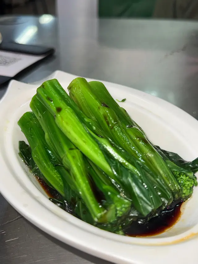 菜心粗壯翠綠,灼3秒鎖住脆甜,淋豉油王+蒜蓉,一碟清得來剛好中和前面重口,$23超佛心!