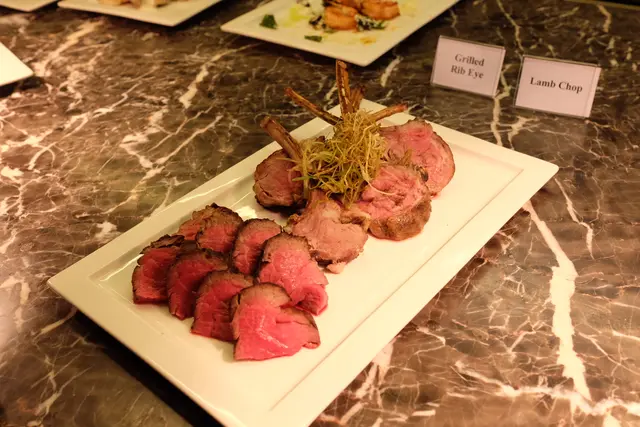 而龍蝦湯,熱食龍蝦菜式如焗龍蝦,菠菜龍蝦eggs benedict,龍蝦pasta和risotto等,和燒肉、烤海鮮類等就可到開放式廚房前與侍應落order,部分可以即時自己拿,而部分就先order,當食物ready時侍應會送來我們的枱。