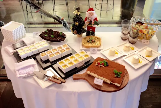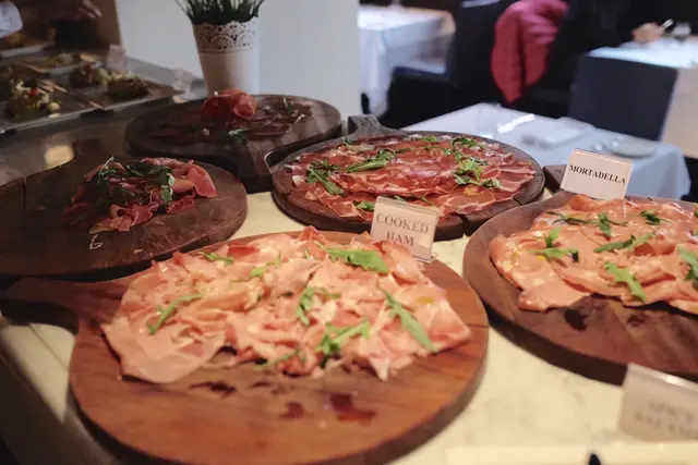 侍應為我們介紹,沙律、凍肉、芝士和冷頭盤等都在大家眼前的長枱上一字排開,還有旁邊另外一張枱擺放各款甜品,都是自助形式。
