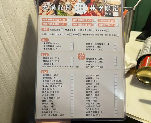 一共有4款湯底比你揀,而我今次揀左特濃沙嗲湯底,八寶盒、五福臨門火鍋配料,其中帆立貝好大粒又鮮味,蝦滑外面既飛魚子一咬就爆開,而且好彈牙食落好有口感,深海黑魚片好嫩滑好正,手打烏冬好彈牙,而且好掛湯,個湯底越煮得耐就好濃郁,所有火鍋配料唔洗點醬汁都好入味,真係唔好睇少一人份量既火鍋係會唔飽,同屋企人share食先食得晒 !