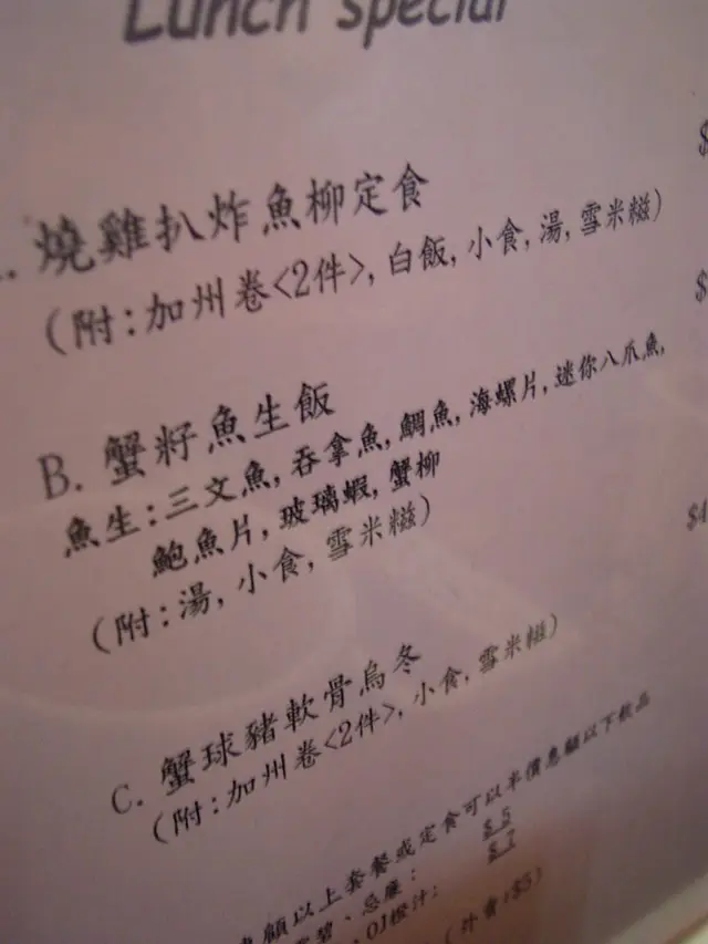 原來,有張白色既點單紙仲有其他午餐既...我走溜眼tim..