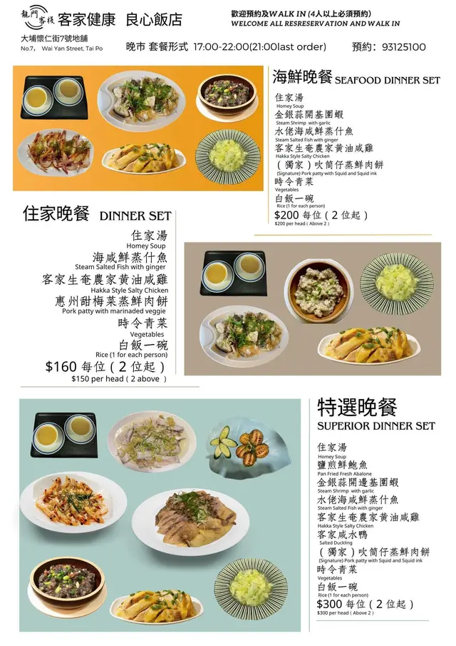 店內阿姐告知,到十月尾他們便恢復做晚市的客家私房菜,價錢豐儉由人,款式有一百六十元一位的住家晚餐、二百元的海鮮晚餐及三百元一位的特選晚餐,實在令人期待。 在座有一位客人竟然已預早訂了位呢!