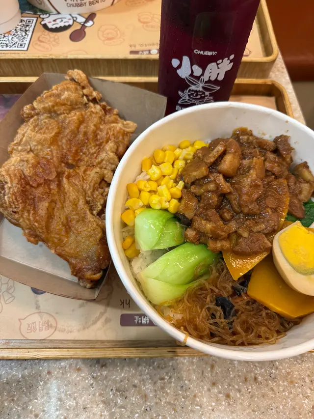 滷肉便當仲包括南瓜 粟米 小棠菜 粉絲 滷水蛋