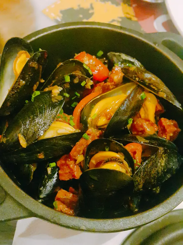 仲有肉腸煮青口, 數量都幾多, 青口漲卜卜夠肥美, 青口鮮甜又夠煙韌.