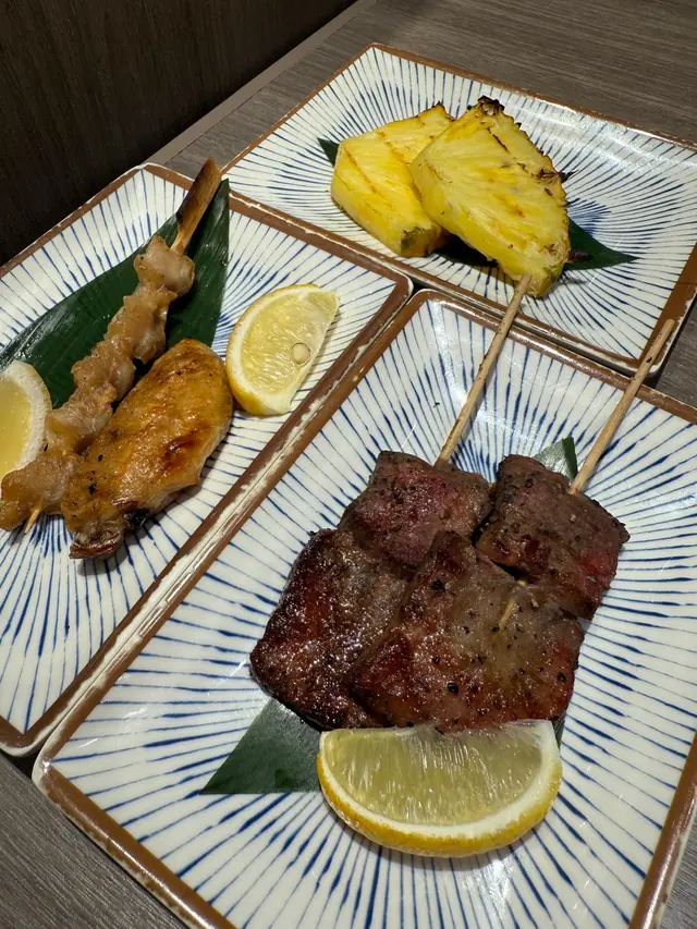 鹽燒牛舌、雞翼、雞軟骨及燒新鮮菠蘿都是適合送酒及解膩之選