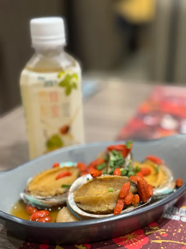 杞子花雕醉鮑魚,鮑魚充滿酒香,入口爽彈甘甜與及爆炒鱔球鱔肉彈滑又無骨爆炒香口又惹味