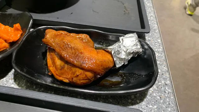 巨型髀燜得入味,甜鹹瑞士汁滲透骨髓。肉質鬆化不黐牙,雞皮帶微黏膠質,手撕啖肉過癮,抵食之選。