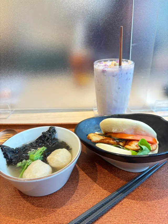 跟住係照燒雞刈包($52)包皮鬆軟,裡面嘅雞肉醃得剛剛好,甜中帶鹹,味道平衡得宜,配合刈包嘅Q彈感,食落好滿足!♥️仲有一碗紫菜湯,湯底清爽,紫菜嘅鮮味夠濃,十分開胃,完美襯托出其他小食。