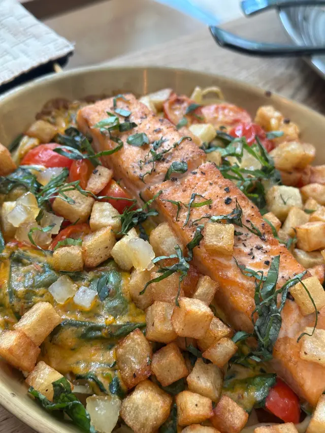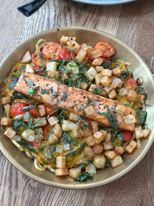 木系文青咖啡店 BEAFAN123等級42025-04-29152 瀏覽 關注 「廿一由八」在香港大學附近,這家咖啡店,環境清靜,木系簡約的裝修風格令人感到放鬆,特別適合大學同學和老師來這裡聚會或自習。陽光透過大窗戶灑進來,營造出溫暖的氣氛,讓人一走進來便感到舒適。我點了煙三文魚香烤羽衣甘藍南瓜溫沙律,酸甜的口感令人驚喜,烤羽衣甘藍的脆口配搭柔軟的南瓜,口感清新又滿足。接著是微辛番茄醬燴三文魚配脆薯丁的扁意粉,香氣撲鼻,脆薯粒增加了口感的層次,少許辣味更是提升食慾。最後,煙薰布里巴斯克芝士蛋糕的濃郁味道 配上一杯香醇的Flat White及清新的Espresso Tonic,完美結束了這個愉快的午餐。1以上食評乃用戶個人意見 , 並不代表OpenRice之觀點。讚好分享廿一由八 https://s.openrice.com/QrbT0hULR00檢舉 張貼 評分4味道4環境4服務4衛生4抵食用餐日期2025-04-20等候時間10 分鐘 (堂食)用餐時段午餐