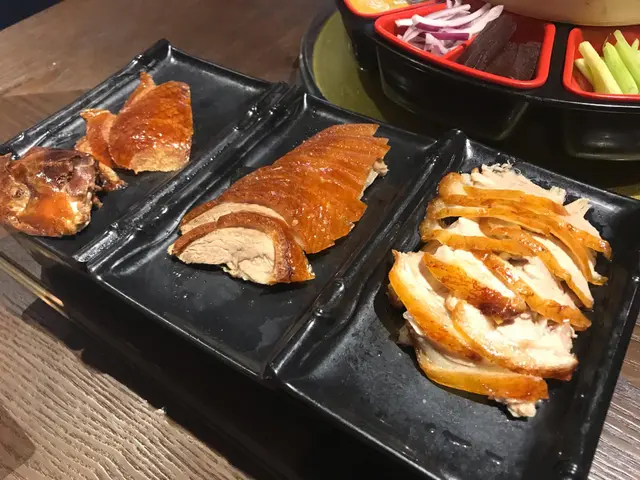 黎到羲和雅苑,真係唔可以唔要呢度最出名嘅招牌烤鴨,我哋因為得兩個人嘅關係,最後只係叫咗半隻,不過份量絕對已經係非常足夠,呢度嘅烤鴨係會分為三盤,第一份係只有鴨皮,第二份係有鴨皮加肉,第三份係只有鴨肉。每一份所配既醬都唔同,餐廳侍應會再慢慢講解,三盤個底會有熱氣哄住唔怕凍。呢個烤鴨真係超級好味,一定要叫呀!