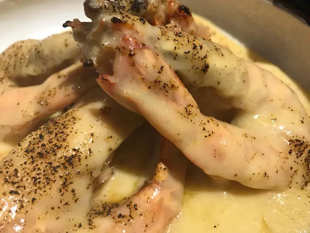牛油芝士焗大蝦一上到枱,陣芝士味已經好勁,話明焗大蝦啲蝦真係好大隻,配上勁濃芝士,真係好好味。除咗芝士焗大蝦之外,個蝦底仲有一啲米餅,食完蝦之後再食米餅,極尚享受。