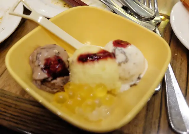 飽還飽雪糕係唔可以唔食的,小小三球滿足矣!!
