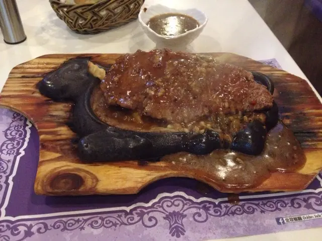 好,來到主角~牛扒,肉質算合格但未算出色。食完之後都無咩深刻印象。茶餐廳以上扒房未滿。慶幸黑椒汁與蒜茸(+2元)搭夠。服務員也算有求必應,我要多碗黑椒汁他們很樂意奉上。整體而言獨立放在其他地方可以。但放在這條街面臨兩大高手就有被比下去的感覺。