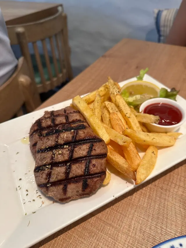 呢個串燒可以揀雞 / 牛,我哋揀咗牛,食落有啲韌,同埋得一串肉同薯條,性價比唔太高!