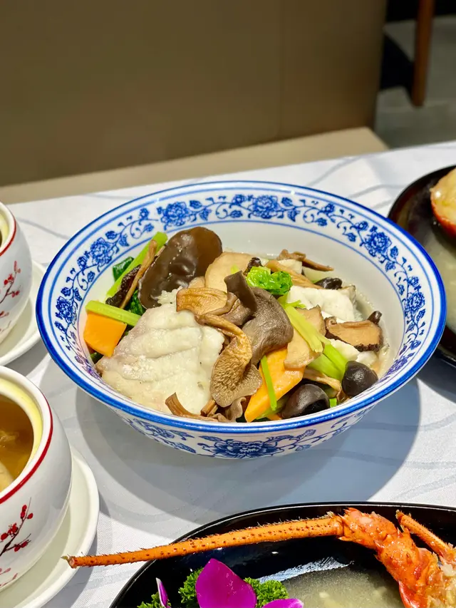 套餐有個蔬菜balance啲!班球有4大片,浸野菌上湯幾入味,菜系菜芯苗。