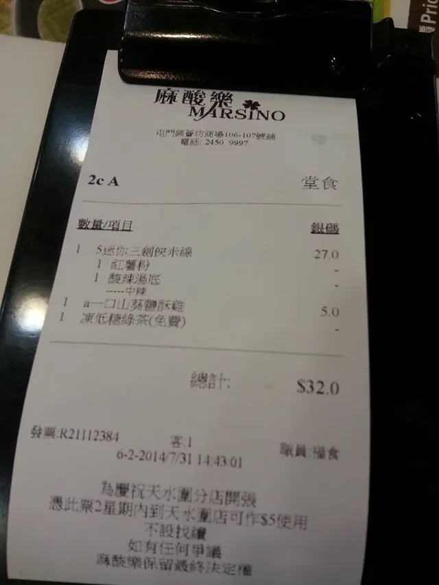 每況愈下既野食 alice12345等級32014-07-31221 views Follow 我由佢$23個陣已經幫襯見證住佢點樣愈黎愈差 價就加左啦,碗野就細左首先我叫6號餐,同我講冇晒,咁只好叫5號啦 以前個豬牛起碼係肥牛,而且牛同豬各2塊, 5號一黎到,每樣各一舊,但又貴D WOR 感覺唔係好抵 個酸辣唔知點解一食落係冇味 食到最尾先食到酸辣味得綠茶唔駛加錢鹽酥雞係繈好食既,不過見到人地大舊過我囉... 同埋我一入去就要同人搭抬 遲過我入反而唔駛...最後,因為係天水圍開左分店,比錢後攞返張單去天水圍個間有$5減 但我諗我唔會點幫襯架啦 因為芍比之前真係冇咁好食The above review is the personal opinion of a user which does not represent OpenRice's point of view.LikeShare每況愈下既野食 麻酸樂米線專門店 https://s.openrice.com/QrbT09LKa00Report Post Ratings2Taste2Decor3Service3Hygiene3ValueDate of Visit2014-07-31Dining Method堂食Spending Per Head$32 (下午茶)