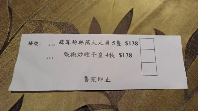 蒜蓉粉絲蒸大元貝,屬選料上乘之作,既得大元貝鮮甜爽滑,但差不多是主角的粉絲才是精華所在,吸收元貝的湯汁元素,又有蒜蓉及醬油的加持,加上本身的質感,實能滿足每一個味蕾!