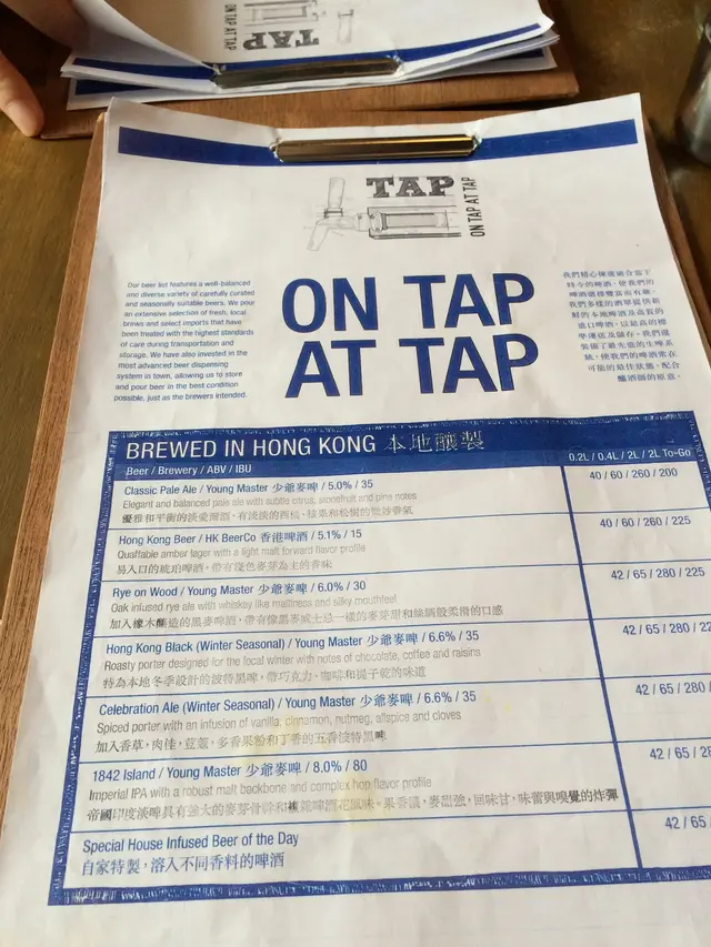 手工啤最最最最讓我喜歡的是因為酒精的濃度一般, 我沒研究, 真的是一般我試的都濃一點了! 難以喝到面紅紅的我, 也上胭脂了! 不過這不是醉的程度, 就是有種溫熱跑到臉上的感覺! TAP可以選不同的SIZE, 我們點了0.2和0.4, 下午這個SIZE真的是剛好!