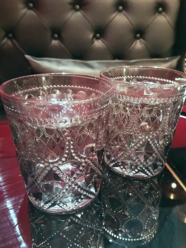 連玻璃水杯都有雕花。
