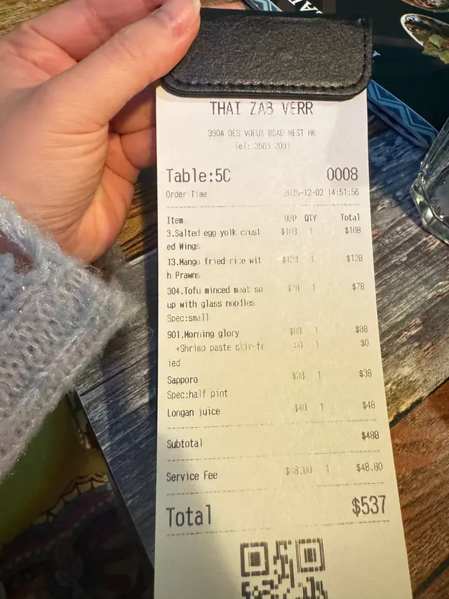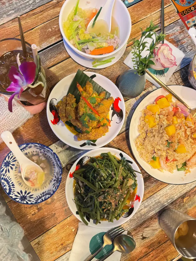 泰國人主理的打卡泰菜 小柔*Sweety Heart等級42025-12-05 關注 陪朋友去打卡堅尼地城一路走到香港大學站搜尋附近餐廳發現這一家泰國餐廳裝修很有特色 很有風格下午茶時間人不算太多想要來拍照可以避開午晚餐時間店員很有禮貌 問我們能不能吃辣我們說小辣 所以怕辣的辣度都可以先說呀泰啤不同時段也有做優惠 6點後還有買一送一!!豆腐肉碎粉絲菜湯咸蛋黃單骨雞翼很惹味濃濃的蛋黃香 配飯一起吃剛剛好泰式馬拉盞通菜必點!!肉鬆芒果蛋炒飯粒粒分明 份量很多 2個女生都吃不完龍眼冰滿滿的龍眼肉 不過有點太甜 以上食評乃用戶個人意見 , 並不代表OpenRice之觀點。讚好分享泰國人主理的打卡泰菜 泰誇張 https://s.openrice.com/QrbT0I7ylW0檢舉 張貼 評分5味道5環境5服務5衛生4抵食用餐途徑堂食