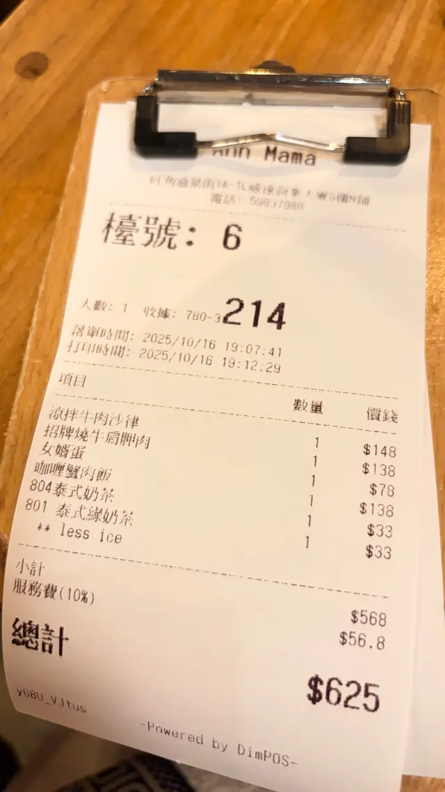 我哋2個人一坐低就即刻掃Code落單~我哋嗌咗涼拌牛肉沙律、一個幾得意叫女婿蛋嘅菜式同埋招牌燒牛肩胛肉再+1個咖喱蟹肉飯做主食,嘢飲竟然比我見到有泰式嘅綠奶茶😳即刻嗌咗嚟試真係幾清新幾好味仲要唔算超甜😍