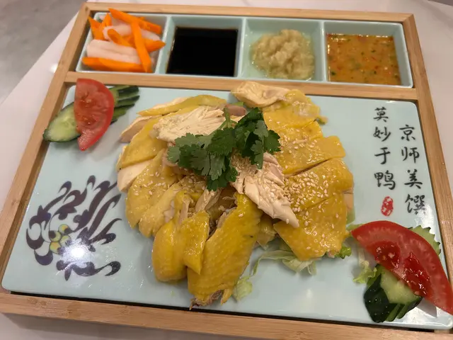 雞肉煮得岩岩好,肉質夠嫩滑,雞胸部位都唔會話鞋口,而搭配既三色醬料係點睛之筆:黑醬油濃甜、薑蓉辛香、仲有泰式辣醬,酸辣醒神,進一步提升左雞肉既鮮味。半隻雞份量對兩人來說非常足夠。
