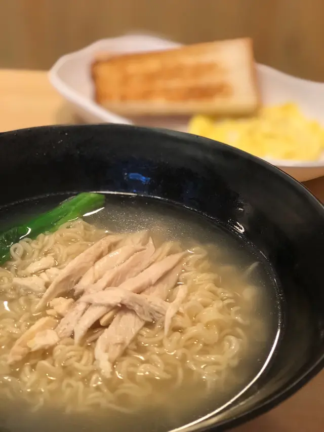 清湯雞絲出前一丁麵,湯底果然夠清, 近乎無味, 出前一丁煮得有水準,保持彈牙口感,
