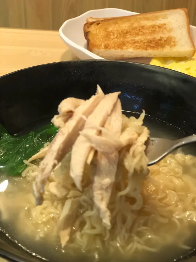 自選茶餐由湯底開始選,我的組合是  [清湯雞絲出前一丁麵 、炒蛋、牛油多士]