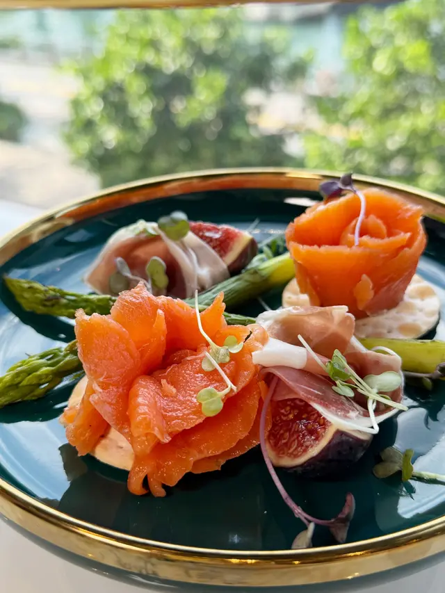 煙三文魚花卷 - 賣相精緻,三文魚魚煙燻香氣濃郁,口感軟滑,搭配香脆餅乾,整體不膩口。