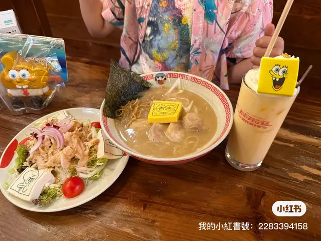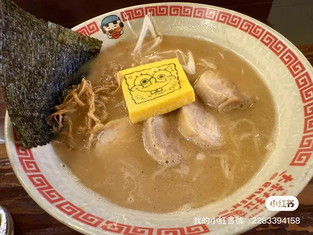 味道不太鹹的拉麵最適合我們有少少柚子味道的雞肉白湯拉麵,軟硬適中可以按照自己的喜好去選擇,碗中又可愛的海綿寶寶造型玉子。