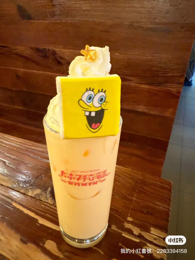 芒果特飲的造型非常吸引小朋友,細佬一見到有海綿寶寶的棉花糖就雙眼發光,芒果味十足的特飲很適合夏天飲用。